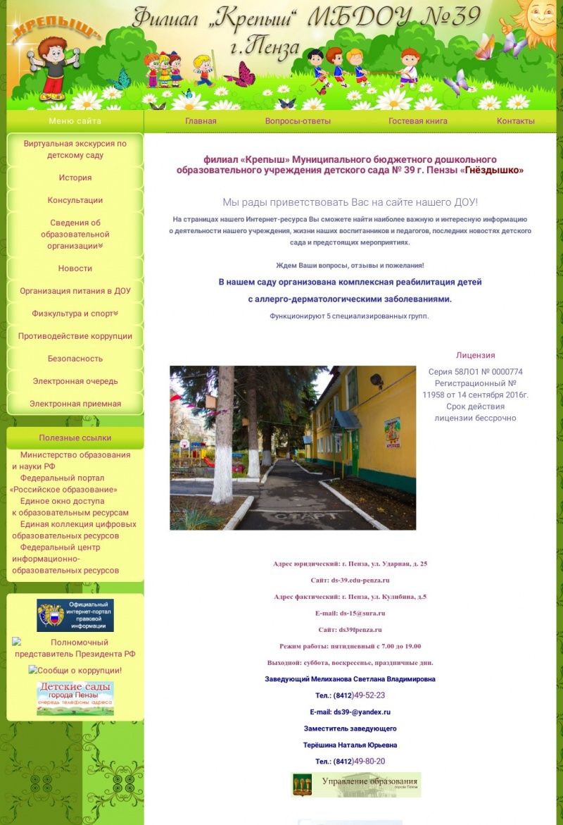 Филиал "Крепыш" муниципального бюджетного дошкольного образовательного учреждения детского сада № 39 города Пензы "Гнёздышко"